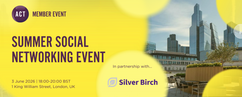 The ACT is holding a Summer social networking event exclusively for ACT members. This free, in-person event, is kindly hosted by Silver Birch. This event will be a great opportunity to meet and network with fellow members and others in the wider treasury community over drinks and nibbles.